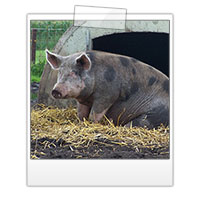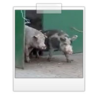 210.04. Schwein Robby zieht aus der Pflegestelle Schwefe aus, da er von den anderen Schweinen "gemobbt" wird Er lebt nun bei unserer Cranio-Sacral-Therapeutin im Westerwald in Gesellschaft zweier Hängebauchschweine und hat sich dort klugerweise gleich die Stellung des ranghöchsten Schweines gesichert.