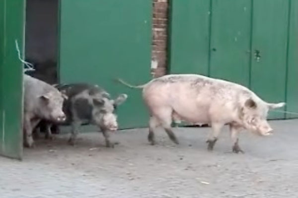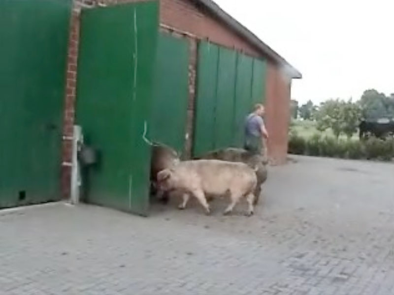 28.04. Drei aus Bayern gerettete Wollschweine dürfen in der Pflegestelle Schwefe bei Soest einziehen.