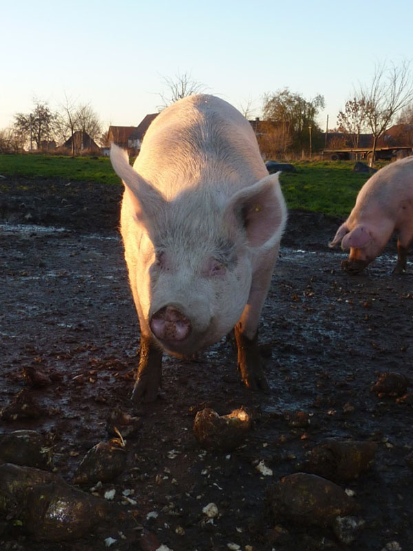 Es war uns nicht bewusst, dass Morchel und Babe eng befreundet waren! Morchel war allerdings ein schüchternes, zurückhaltendes Schwein und Babe dagegen als größte Sau die Chefin in Schwefe.