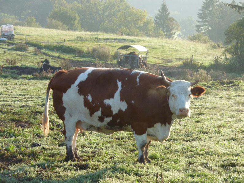 Sie litt zusätzlich an einer Bänderverletzung im Bereich der Hüfte, der ihr das Aufstehen natürlich nicht gerade leichter machte. Babette war ein „Fleischrind“ – diese schweren Rinder haben dann im Alter besonders Probleme mit ihren Knochen. Und vorbeugend hilft da eigentlich nur genug Bewegung. Das ist aber grade nicht die Lieblingsbeschäftigung der älteren Rinder – vielmehr fressen sie überwiegend an einer Stelle und legen sich dann mehrere Stunden zum Wiederkäuen auf die Wiese. Dann stehen sie wieder auf und laufen – bis zum nächsten leckeren Grasbüschel. Durch mangelnde Bewegung baut sich dann unglücklicherweise auch schnell die Muskulatur ab – und danach mögen die Rinder noch weniger laufen. Ein Teufelskreis.
