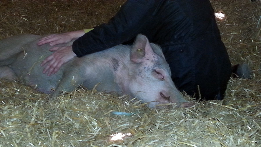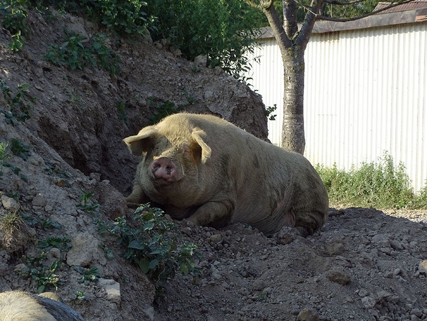 Babe – unser größtes und mit 400 kg Gewicht auch das schwerste Schwein- konnte am 8. Januar nicht mehr aufstehen. Auch mit hochdosiertem Schmerzmittel kam sie traurigerweise nicht wieder auf die Beine, nicht einmal eine kleine Besserung war erkennbar. Deshalb ließen wir sie am 9. Januar einschläfern, denn quälen sollte sie sich nicht. Babe wurde nur sechs Jahre alt.