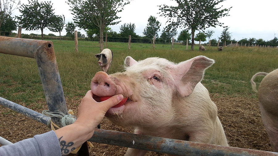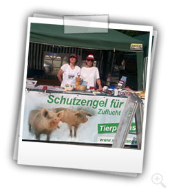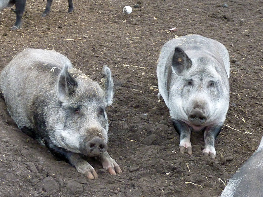 Die Schweine genossen den Patenbesuch in vollen Zügen, denn sie wissen genau, dass Paten nie ohne fressbare Mitbringsel zu Besuch kommen.