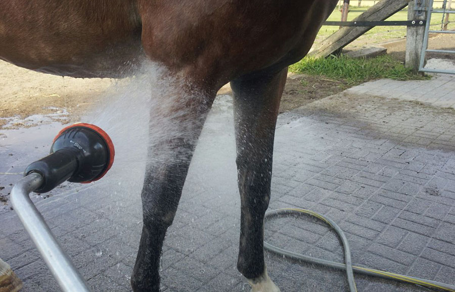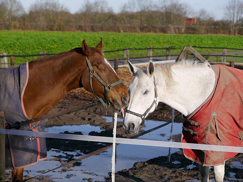 Das Wetter machte uns Sorgen, denn es regnete und regnete. Die Paddocks auf dem Pferdehof in Korschenbroich standen unter Wasser. Gar nicht gut für die Pferdebeine. In den Fesselbeugen vor allem von weißen Beinen entsteht schnell Mauke, das sind kleine entzündliche Krusten, die für die Pferde sehr unangenehm sind.