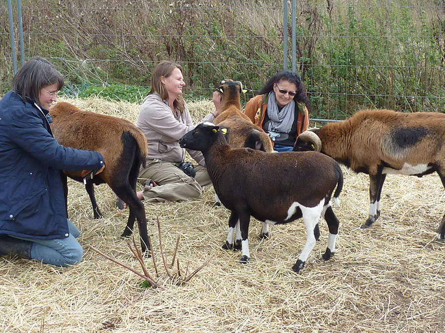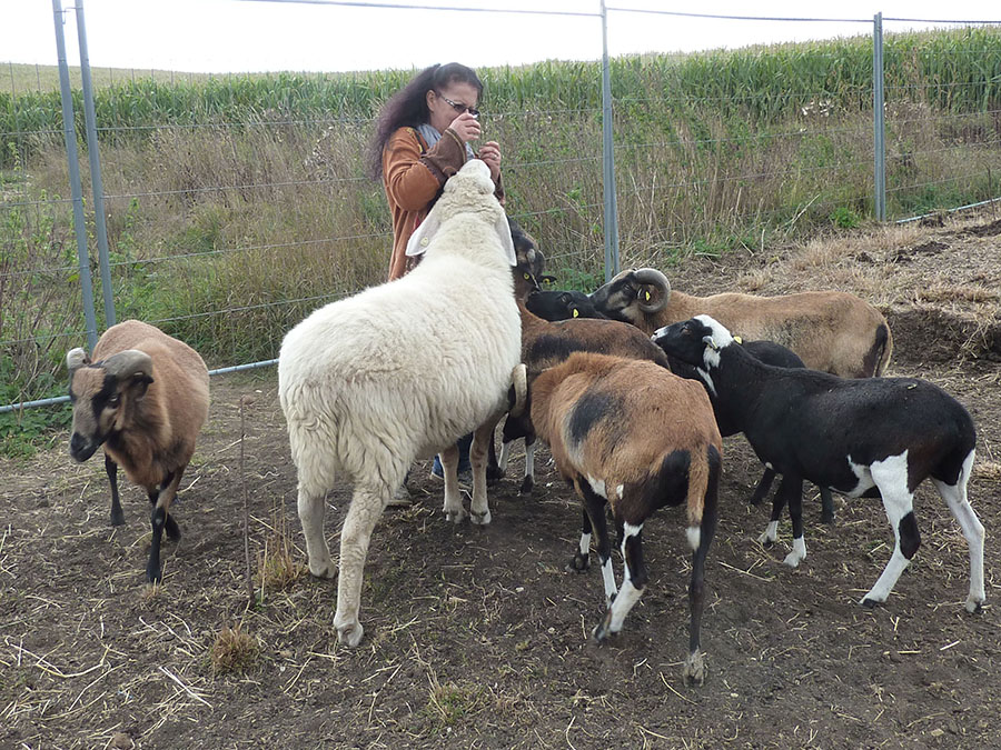 Am 20. September bekamen die Kamerunschafe im bayrischen Monheim hohen Besuch – Heike vom Verein „ Helft handeln“, die Schutzengel für Tiere auf das Schicksal der Schafe aufmerksam gemacht hatte, und Anita Hess, eine alte Freundin der Schutzengel für Tiere, kamen zu Besuch und freuten sich zu sehen, dass die Herde sich gut eingelebt hatte.
