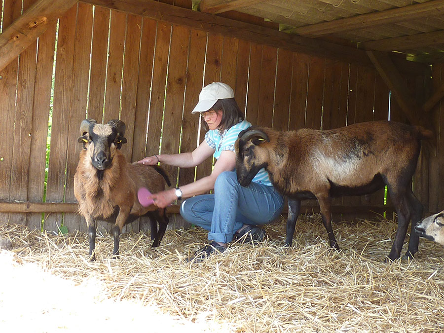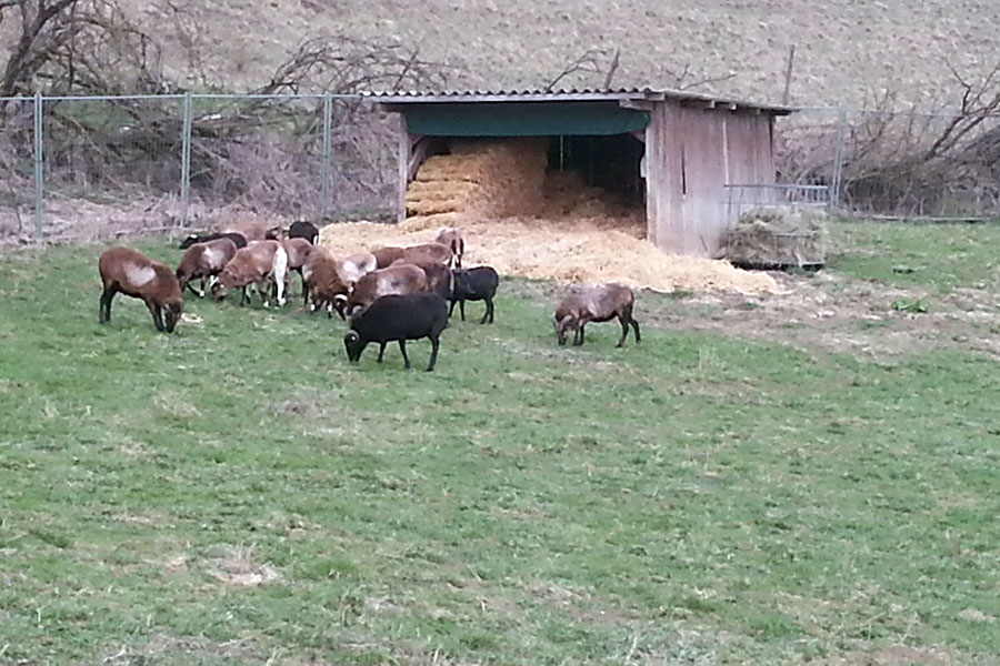 Allerdings gab es dann schon wieder Sorge um einige der Schafe, die husteten und Nasenausfluß hatten. Der Tierarzt kam und stellte Lungenwürmer fest. Die hatten die Tiere vermutlich aus dem alten Zuhause in der Pfalz schon mitgebracht. Zum Glück sprachen sie auf die Wurmkur aber gut an und der Wurmbefall hatte keine schlimmen Folgen. Alle 18 Schafe waren schnell wieder fit.