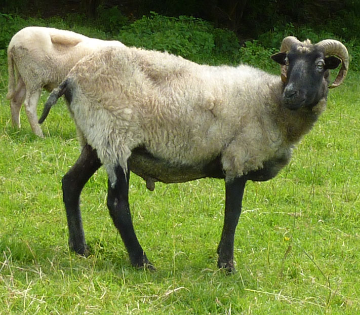 Das schwere weißköpfige Fleischschafbock wog zwischen 80 und 100kg, das ist für ein Schaf sehr viel und die Tierärztin war sicher, dass er nie wieder hätte laufen können.