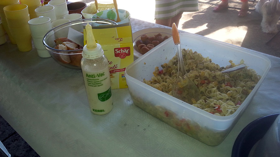 Es war auch die Zeit der ganz heißen Tage mit 35 Grad – Alfred, unser Verpächter unterstützte uns mit seiner Gartenbrause und kühlte Ginny mit dem kalten Brunnenwasser, was ihr auch sichtlich gut tat.