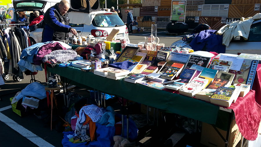 Im September gab es zum Glück an zwei Wochenenden Zeit für einen Trödelmarktstand - in Gummersbach und in Olpe. Wir bekommen erfreulicherweise immer schöne Sachen gespendet und seit die vielen Flüchtlinge nach Deutschland gekommen sind, findet gut erhaltene Kleidung auch dankbare Abnehmer.
