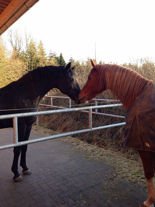 Unsere Freude war groß, als Wolkentanz sich fast ein Jahr, nachdem er uns von seiner Reiterin wegen Ataxie und damit verbundener Nicht-Reitbarkeit geschenkt wurde, endlich mit einem anderen Pferd in der Herde anfreundete. Der auserwählte war O` Lord, ein Springpferd im Ruhestand.