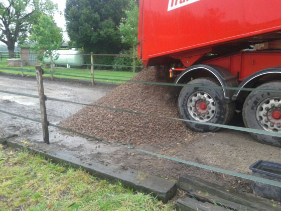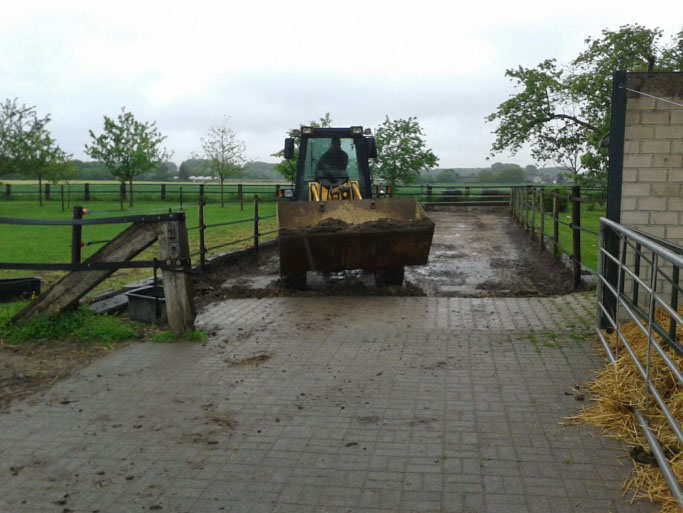 Der Paddock wurde zunächst von der Matsche befreit und etwa 40 cm tief ausgeschachtet.