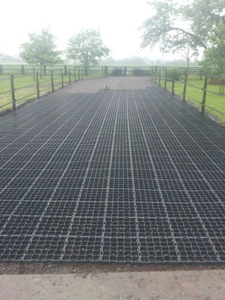 Anschließend wurden die Ecoraster aus Kunststoff eingesetzt und zu guter Letzt alles mit Sand aufgeschüttet. Beim Verlegen des Ecorasters half noch unser Verpächter mit, weil es schon wieder zu regnen drohte. Vielen Dank dafür!