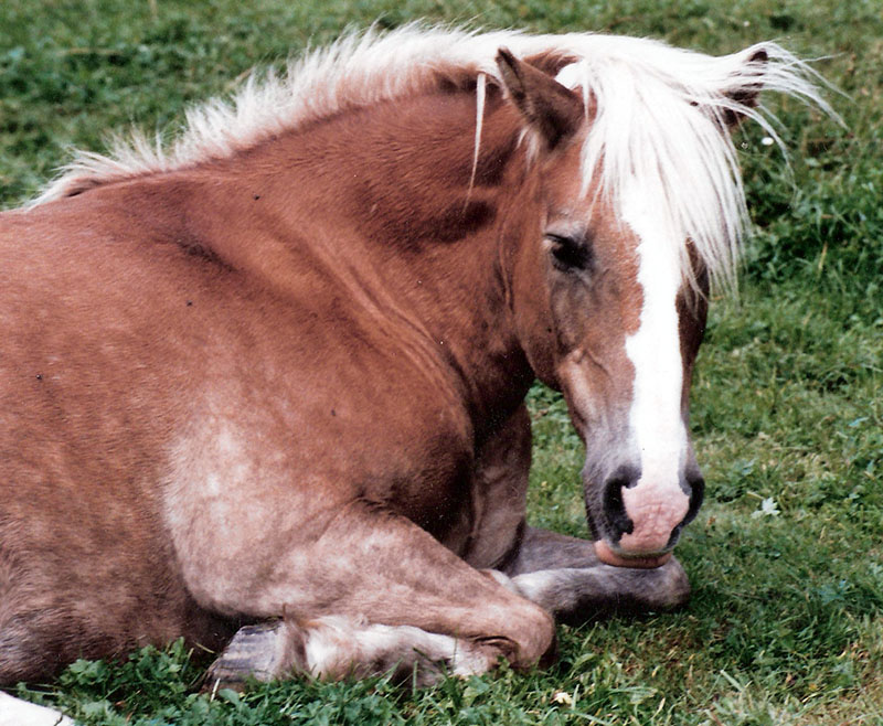 Die 1984 geborene Haflingerstute wurde 2003 einem Händler in Bad Berleburg von uns zum Schlachtpreis abgekauft. Kurz danach brachte Heidy traurigerweise ein totes Fohlen zur Welt.