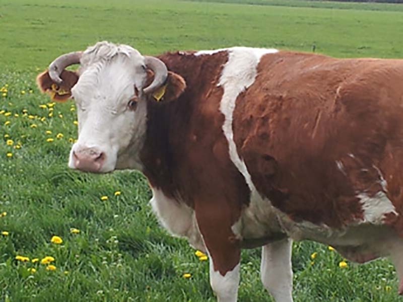 Im Jahr 2009 hatten die Betreiber des Gestütes ihren Hof verkauft, weil sie sich zur Ruhe setzen wollten. Auch die zu diesem Zeitpunkt noch vorhandenen drei Rinder gingen in das Eigentum der neuen Hofbesitzer über. Eine Patin von Schutzengel für Tiere hatte ein Patenpferd auf diesem Hof und erfuhr, dass alle drei Rinder Ende Mai zum Metzger sollten, weil der neue Besitzer sie nicht mehr haben wollte. Alle drei konnten wir nicht aufnehmen, aber wenigstens Lenie durfte in die niedersächsische Pflegestelle Rehden umziehen, nachdem die alten Gestütsbesitzer sich anständigerweise bereit erklärt hatten, Lenie zurückzukaufen und sie Schutzengel für Tiere zu schenken. Seit Mitte Mai 2009 lebte sie bei uns und braucht den Metzger nicht mehr zu fürchten.