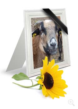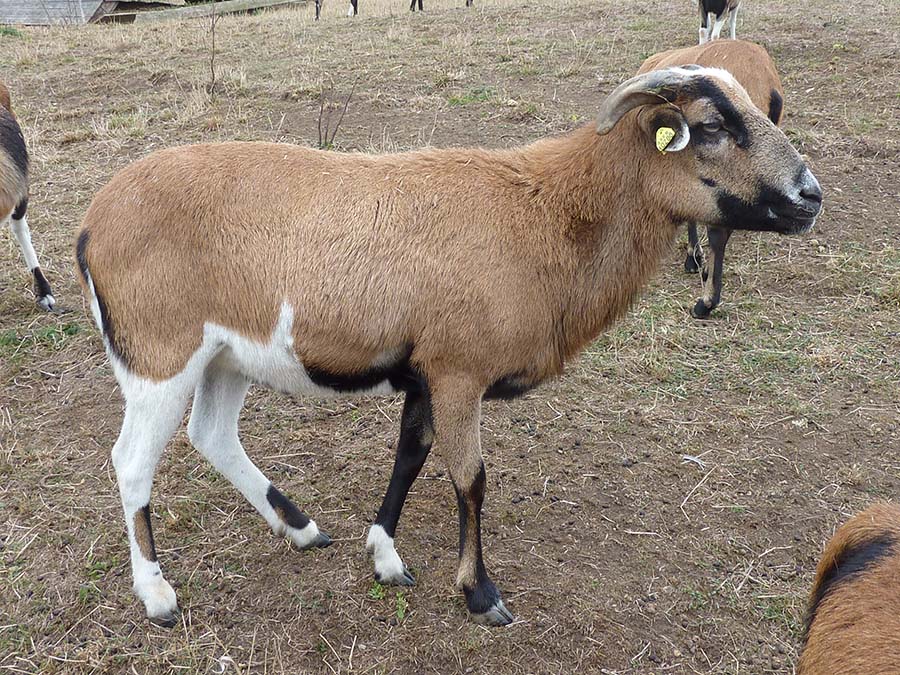 Der mächtige Kamerunschafbock wurde mit seiner insgesamt 18-köpfigen Herde vor der Schlachtung gerettet. Die Tiere stammen von einem Resthof in Rheinland-Pfalz, auf dem sich ein schon älteres Ehepaar einen Traum erfüllt hatte.