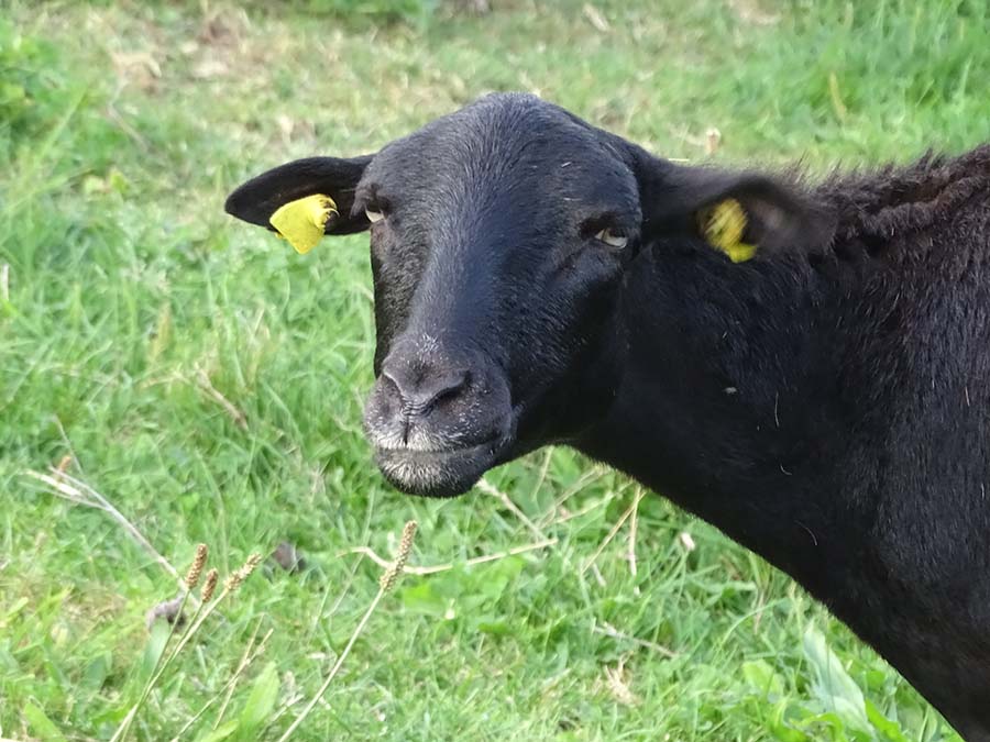 Die schwarze Nahla wurde mit ihrer insgesamt 18-köpfigen Herde vor der Schlachtung gerettet. Die Tiere stammen von einem Resthof in Rheinland-Pfalz, auf dem sich ein schon älteres Ehepaar einen Traum erfüllt hatte. Leider erkrankte die Frau schwer und starb im März 2015. Durch ihre Krankheit war es schon länger mit dem Hof bergab gegangen und er musste zwangsversteigert werden.