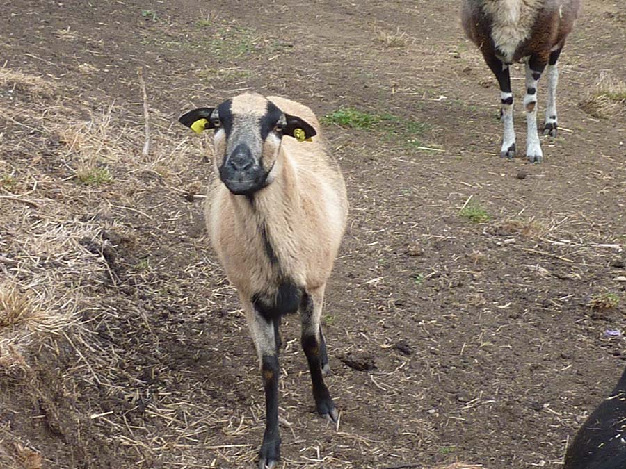 Die Kamerunschafdame Ola wurde mit ihrer insgesamt 18-köpfigen Herde vor der Schlachtung gerettet. Die Tiere stammen von einem Resthof in Rheinland-Pfalz, auf dem sich ein schon älteres Ehepaar einen Traum erfüllt hatte. Leider erkrankte die Frau schwer und starb im März 2015. Durch ihre Krankheit war es schon länger mit dem Hof bergab gegangen und er musste zwangsversteigert werden.