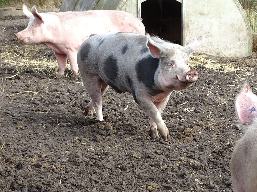 Emil stammte aus der Eifel von einem konventionellen Bauernhof. Wie seine Schwester Sofi ist er im Juli 2009 als „Kümmerferkel“ zur Welt gekommen. D.h. die beiden konnten sich gegenüber ihren Geschwistern nicht durchsetzen und bekamen keine oder zumindest viel zu wenig Milch ab. Kein Landwirt macht sich die Arbeit, solche Kümmerlinge mit der Flasche groß zu ziehen, das ist leider nicht wirtschaftlich für einen Betrieb. Mit Emil und Sofi aber meinte es das Schicksal gut. Denn in der Nachbarschaft gab es eine hochengagierte Tierärztin, die beide mit zu sich nach Hause nahm und in ihrem Esszimmer mit der Flasche großzog. Tagsüber unterhielten die beiden Ferkel das Wartezimmer der Tierarztpraxis. Als aber Esszimmer und Wartezimmer stark renovierungsbedürftig waren, suchte die Tierärztin händeringend ein metzgersicheres Zuhause für Emil und Sofi. Im September 2009 zogen die beiden nach Rehden in Niedersachsen um. Dort genossen die Schweine von Mai bis September Freilandhaltung, von Oktober bis April waren sie im Stall.