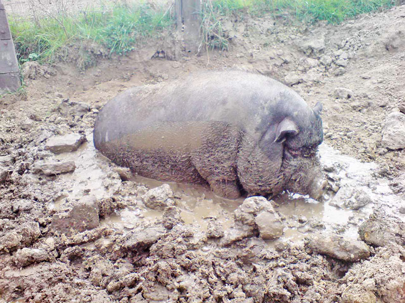 Der kastrierte Hängebauchschweineber stammte wie sein Bruder Günter aus Freudenberg im Siegerland und lebte bei einer Zahnarztfamilie. Eigentlich ging es den beiden dort sehr gut, bis 2008, wie in mehreren Teilen Deutschlands, auch in Hessen wegen der Wildschweinepest die Freilandhaltung von Schweinen bis auf weiteres verboten wurde. Für Ewald und Günter war von da an Stallhaft angesagt. Im Frühjahr 2010 hielt das der Besitzer nicht mehr aus, die Schweine taten ihm leid. Mit dem Versprechen, die volle Patenschaft für die Tiere zu übernehmen, durften die beiden sieben Jahre alten Schweineherren Ewald und Günter in die Pflegestelle nach Schwefe umziehen. Zunächst hatten wir ein etwas schlechtes Gewissen, weil es kein richtiger Notfall war, denn Ewald und Günter wären nicht geschlachtet worden und zahllose Schweine müssen schließlich dauerhaft im Stall leben. Aber nachdem Günter unter den erschrockenen Blicken seines ehemaligen Besitzers aufgrund extrem langer Klauen nur mit großer Mühe aus dem Anhänger klettern konnte, und nach der überfälligen Klauenpflege sehr fröhlich mit seinem Kumpel Ewald im Gehege unterwegs war, durften wir es als richtig einschätzen, den beiden eine neue Heimat gegeben zu haben.