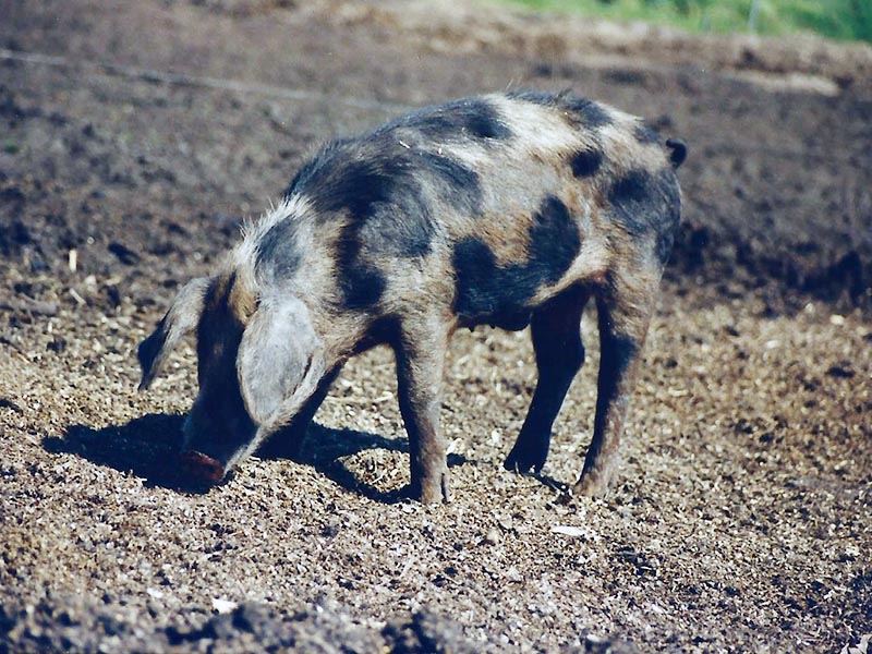 Der ziemlich kleingebliebene Jonas war eines der zwölf Ferkel, die wir Ende Mai 2000 im Alter von knapp vier Wochen zusammen mit ihren Eltern Minja und Botan freikaufen konnten. Also eine ganze Schweinefamilie. Jonas und seine Geschwister haben am 01.Mai Geburtstag.