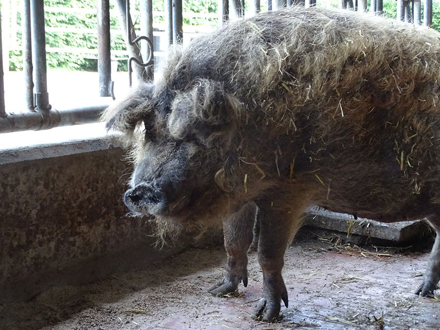 Die schon betagte Mangalitzaoll-Schweinsdame Lilo wurde 2004 auf einem Tierschutzhof im Westerwald bei unserer Freundin Andrea Mais geboren, nachdem diese Wollschweinmutter Waltraud auf der Landstraße zusammen mit dem imposanten Wollschweineber Alf aufgegriffen hatte. Insgesamt elf kleine Wollschweine machten dann aus der Wiese des Hofes in kürzester Zeit einen Acker und Andrea suchte händeringend Plätze für die kleinen Racker samt ihren Eltern. Lilo, ihre Mutter Waltraud und die Geschwister Elli und Wotan kamen zu Schutzengel für Tiere in die Pflegestelle Schwefe bei Soest. Leider musste diese Pflegestelle aufgeggeben werden, so dass Lilo mit allen anderen Schweinen in ein neues Zuhause nach Meschede.