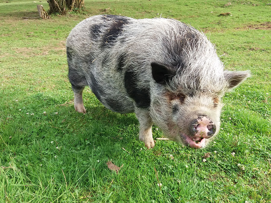Die Minischweinedame hatten wir im Sommer 2016 von den Schweinefreunden übernommen, sie lebte in einer Pflegestelle bei Kaiserslautern.