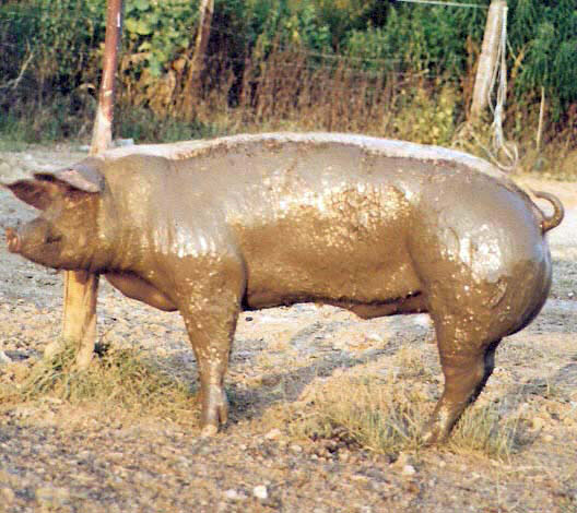 Der immer um Äpfel und Streicheleinheiten - besonders wenn er frisch aus der Suhle kommt - bettelnde Rudi 2 stammte aus dem Taunus und sollte als Spanferkel zum Geburtstag eines Kegelbruders gegrillt werden. Ein anderer Kegelbruder und dessen Frau ließen dies aber glücklicherweise nicht zu und anstatt beim Metzger zu landen, durfte Rudi 2 in das Gartenhaus der Kegelschwester einziehen. Als Rudi fast ein Jahr alt und entsprechend groß geworden war, platzte das Gartenhaus aber aus allen Nähten und die Nachbarn fanden Rudi 2 plötzlich auch nicht mehr so entzückend wie als Ferkel. Schutzengel für Tiere bot die rettende Zuflucht für Rudi 2, der seit Juni 2006 ein sorgloses Leben, endlich auch unter Artgenossen, hier in Schwefe bei Soest führen darf.