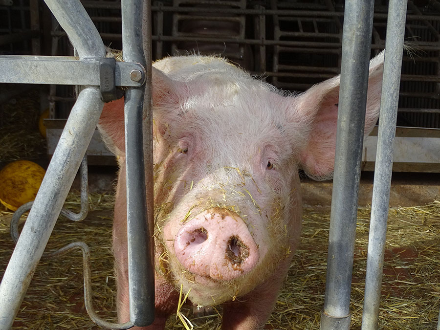 Aber diese vier waren zu viel und sie waren auch schon zu groß, um sie in die nächste Mastferkelgruppe zu integrieren.