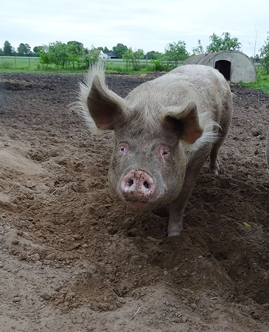 Sofi stammte aus der Eifel von einem konventionellen Bauernhof. Wie ihr Bruder Emil ist sie im Juli 2009 als „Kümmerferkel“ zur Welt gekommen. D.h. die beiden konnten sich gegenüber ihren Geschwistern nicht durchsetzen und bekamen keine oder zumindest viel zu wenig Milch ab.
