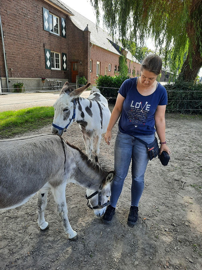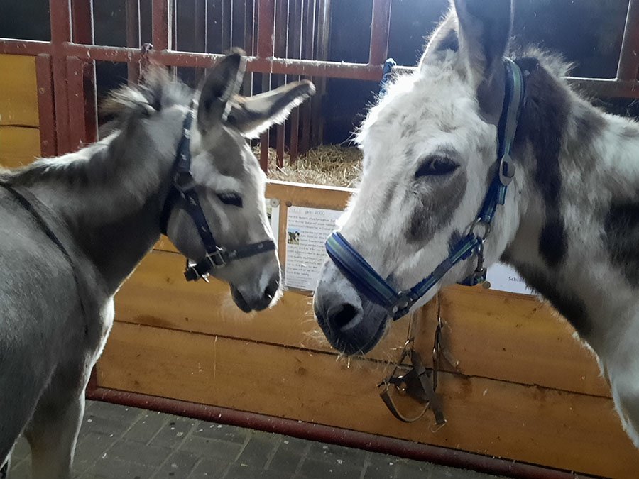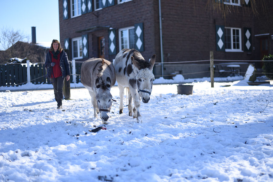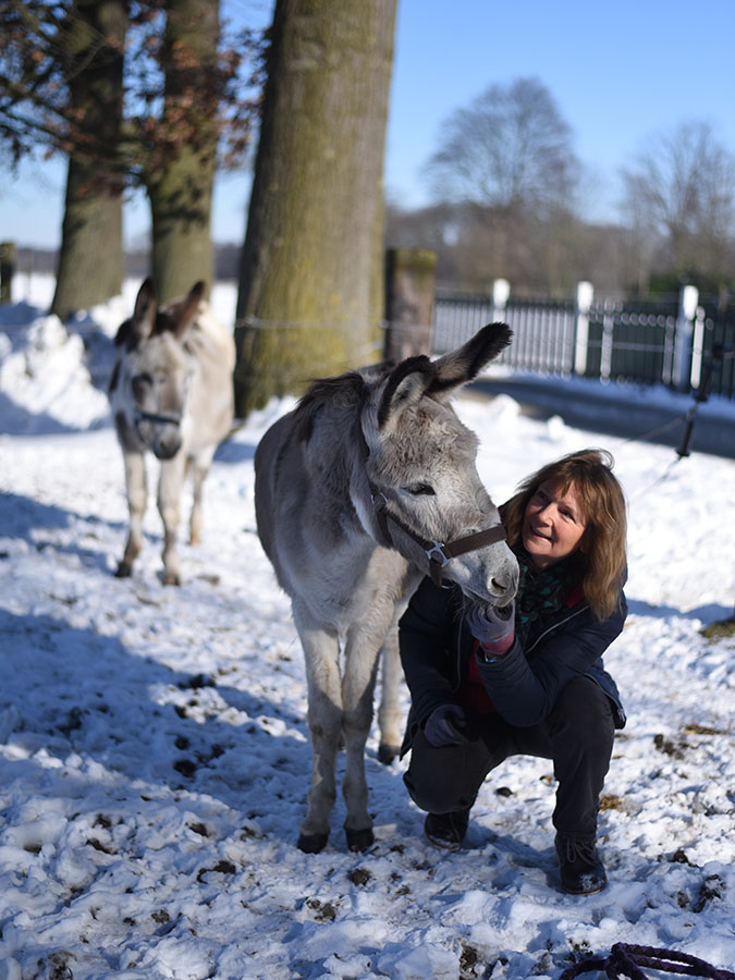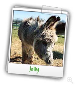 Jolly lebt heute zusammen mit der Eseldame Rosamunde vom Bund gegen den Mißbrauch der Tiere in Geldern am Niederrhein. Sie ist eine ausgesprochen selbstbewusste Eseldame geworden, die genau weiß, was sie will (vor allem aber, was sie nicht will).