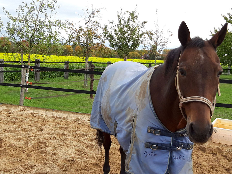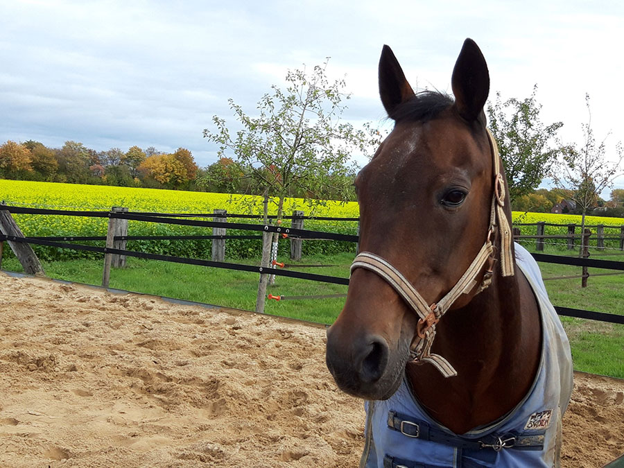 23 Jahre lang hatte Helga einen kleinen Stall gemietet für ihre anderen beiden Pferde Mütterken, Lady und mich. Tragischerweise wurde der dann verkauft. 2019 sind wir alle zusammen auf den Pferdeschutzhof von Schutzengel für Tiere umgezogen.