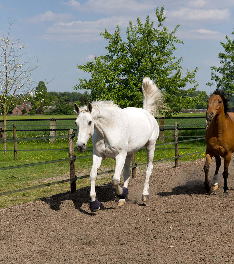 Seitdem teilt Kimbo Wiese und Paddock mit der Schimmelstute Pasadena. Sie ist eigentlich kein Tierschutzpferd, sondern gehört der Frau unseres Verpächters. Seit sie mit unseren Pferden aber zusammen auf der Wiese steht, durfte auch sie in Rente gehen.