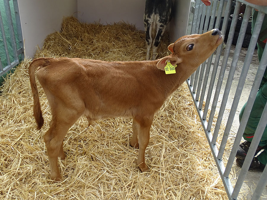 Der kleine Jersey-Mix-Bulle kam in August im sauerländischen Iseringhausen zur Welt. Der Bio-Bauer dort betreibt einen Milchkuh-Hof. Diese müssen jedes Jahr ein Kalb zur Welt bringen, damit sie auf Dauer so viel Milch geben. Eigentlich ist ihre Milch natürlich für die Kälber bestimmt, aber der Mensch meint als einziges Säugetier, leider auch im Erwachsenenalter noch die Milch der Kühe trinken zu müssen. Weibliche Kälber behält der Landwirt deshalb, sie wachsen zu Milchkühen heran. Männliche Jerseyrinder dagegen kann er nicht gut brauchen, diese zierliche Rinderrasse eignet sich nicht für die Mast. Jerseyrinder sind eine „Milchrasse“. Deshalb inseriert der Landwirt die männlichen Tiere gerne bei eBay.