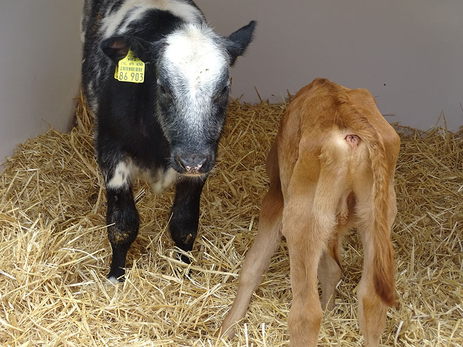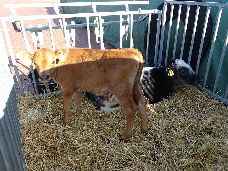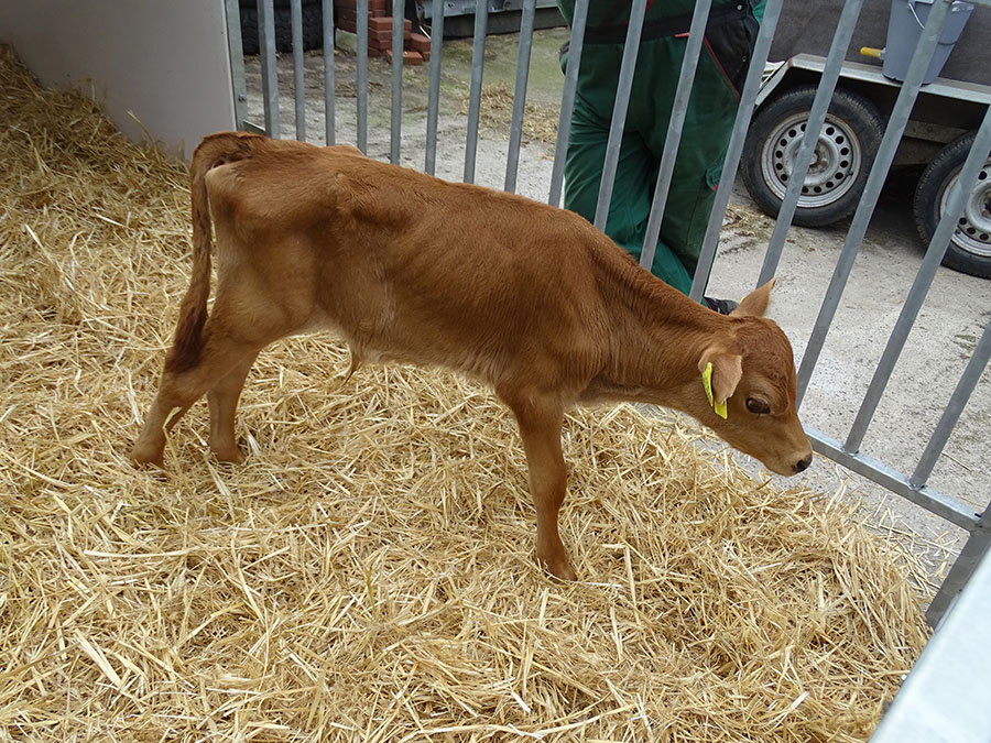 Unser Betreuer in Rehden hatte zwischenzeitlich das Kalb Freya von einem Nachbarhof als neue Gefährtin für Joschi gekauft. Joschi und Freya hatten also großes Glück und freundeten sich auch schnell an.
