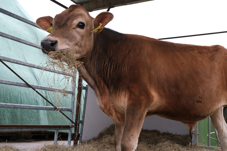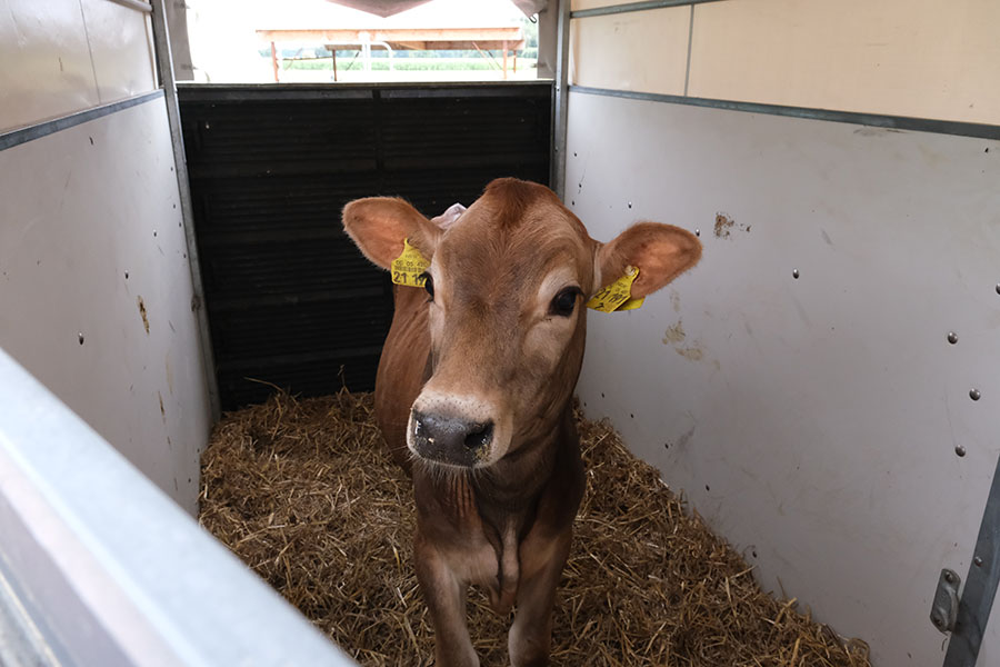 Das männliche Jerseykalb wurde im Februar 2022 auf einem „Milchkuh“-Hof am Niederrhein geboren und von Tierschützern vor der Mast bewahrt.