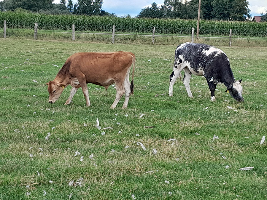 Kühe müssen jedes Jahr ein Kalb zur Welt bringen, damit sie auf Dauer so viel Milch geben. Eigentlich ist ihre Milch natürlich für die Kälber bestimmt, aber der Mensch meint als einziges Säugetier, leider auch im Erwachsenenalter noch die Milch der Kühe trinken zu müssen. Weibliche Kälber behält der Landwirt deshalb, sie wachsen zu Milchkühen heran. Männliche Jerseyrinder dagegen kann er nicht gut brauchen, diese zierliche Rinderrasse eignet sich nicht für die Mast. Jerseyrinder sind eine „Milchrasse“.