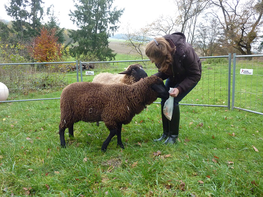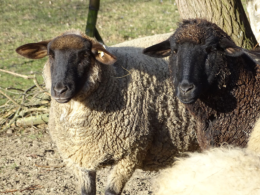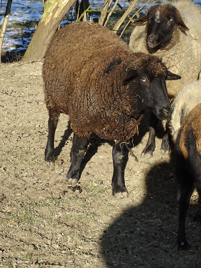 Das braune Schaf Timmi mit dem schwarzen Kopf stammt vom Niederrhein und wurde 2014 zusammen mit ihrem Gefährten Joseph von einer Tierfreundin vor der Schlachtung freigekauft.