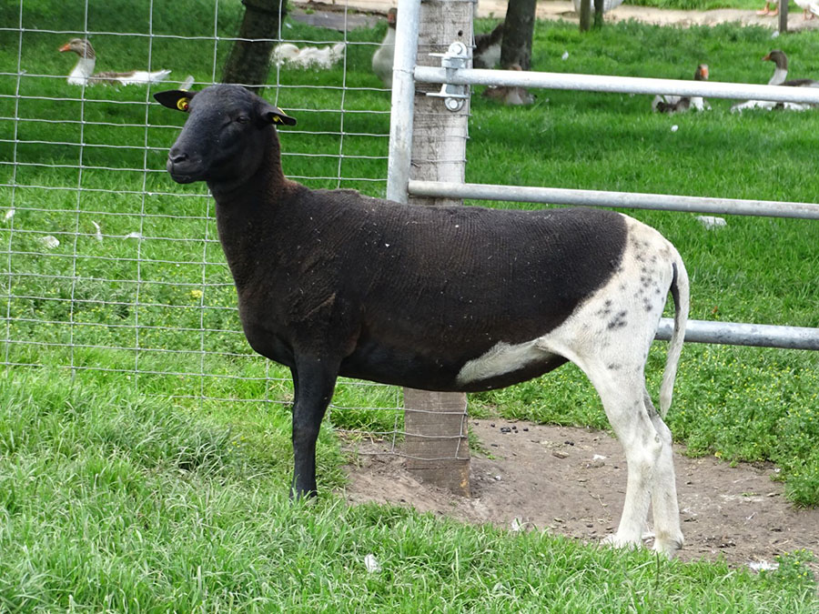 Das im Juli 2020 geborene hübsche Schafmädchen hat die ostfriesische Milchschafdame Wickie zur Mutter, ihr Papa ist vermutlich ein Dorper Schaf.