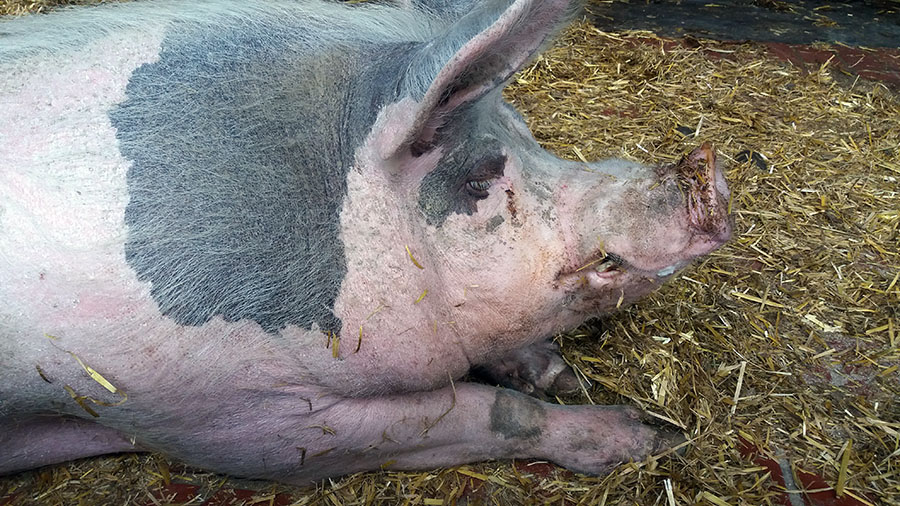 Der kastrierte Eber sieht ein bisschen aus wie eine Comicfigur, so bunt ist Borsti.