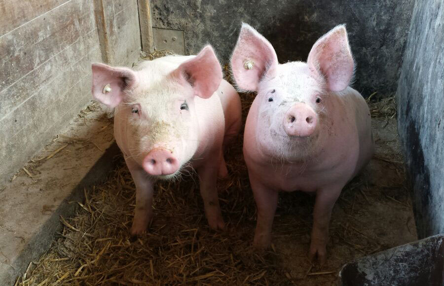 Die Schweine sind im Stall mit denselben Gefährten zusammen wie auf der Weide in Schwefe. Hermine und Pippilotta haben das Glück, ein ganzes Stallabteil allein bewohnen zu dürfen.