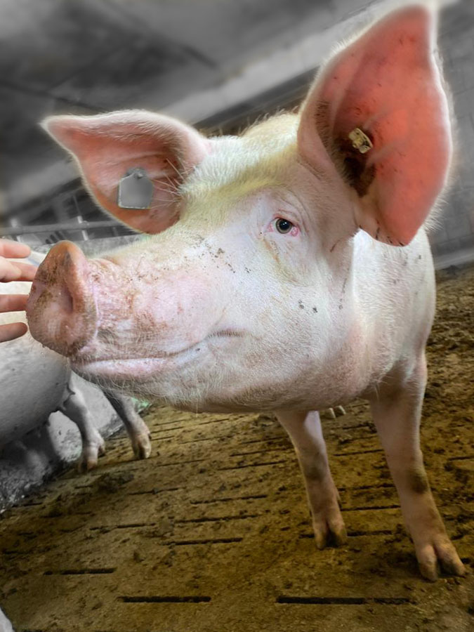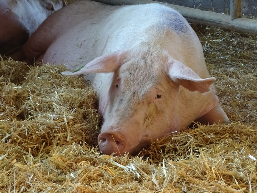 Sie kam bis zur Abholung mit Sauen aus anderen Gruppen zusammen in eine große Bucht, wo sie einen Rangkampf durchmachen musste, aber es blieb ihr erspart, fünf Wochen lang im Ferkelkorb eingesperrt zu sein und danach ihre Ferkel weggenommen zu bekommen. Ein Trauma, was Muttersauen über mehrere Jahre zweimal mitmachen müssen. Bis ihre Körper nicht mehr produktiv genug als Gebärmaschine sind und sie für die Schlachtung aussortiert werden.