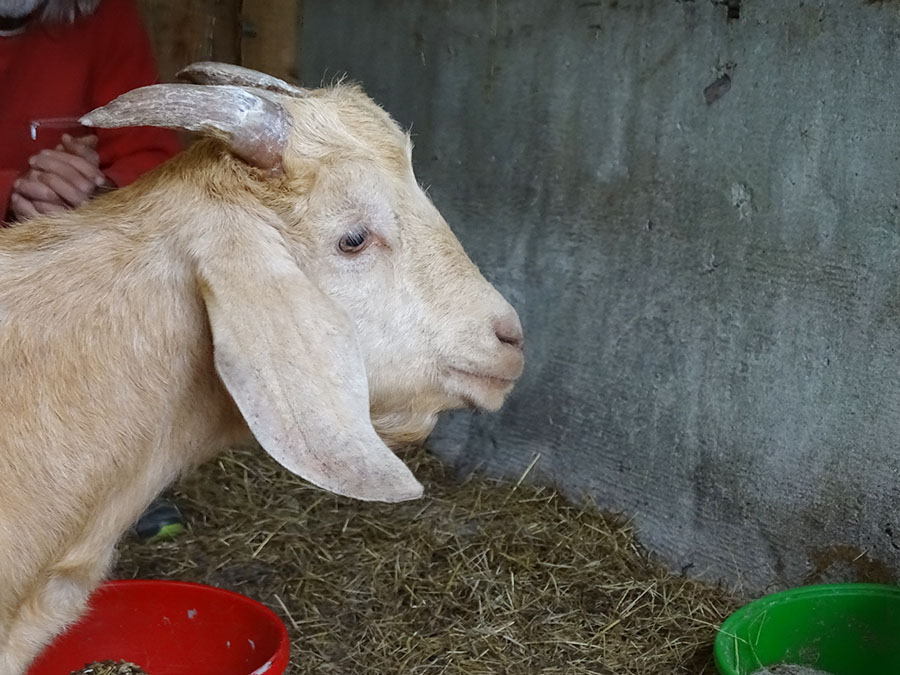 Einige Tage zuvor hatten wir schon einen Burenziegenbock gerettet, den Jake. Der war aber schon geschlechtsreif, deshalb musste er bis zur Kastration von der Herde getrennt leben und sollte aber trotzdem nicht alleine sein. Deshalb hatten wir einen Kumpel für Jake gesucht.